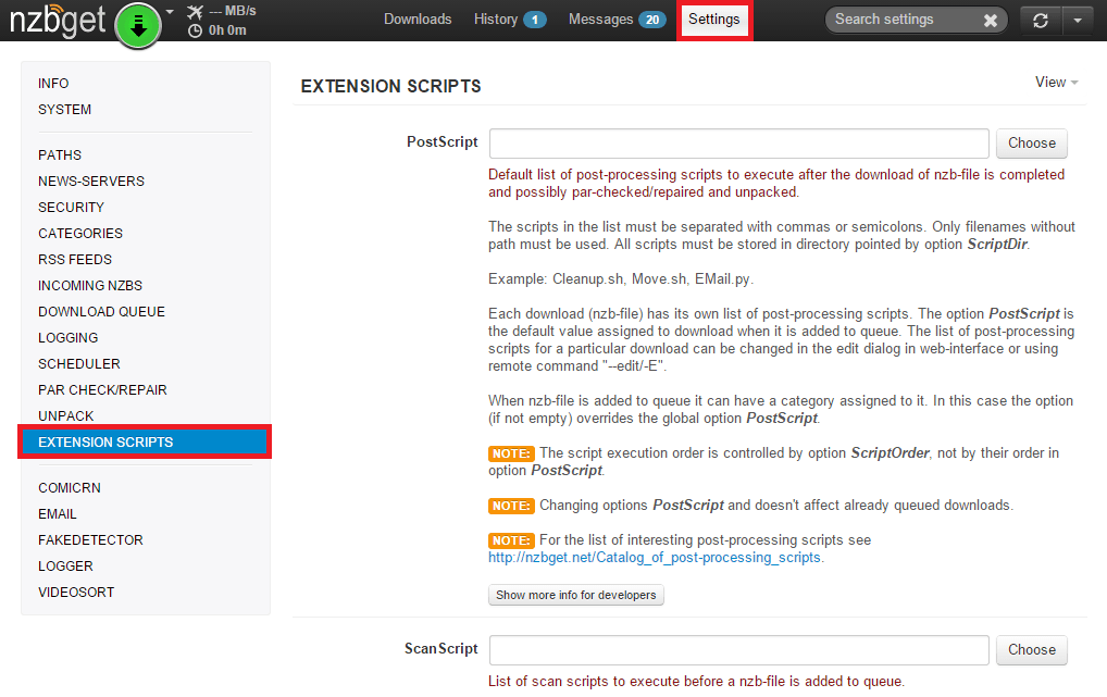 configure nzbget fakedetector avoid fake usenet files click queuescript choose