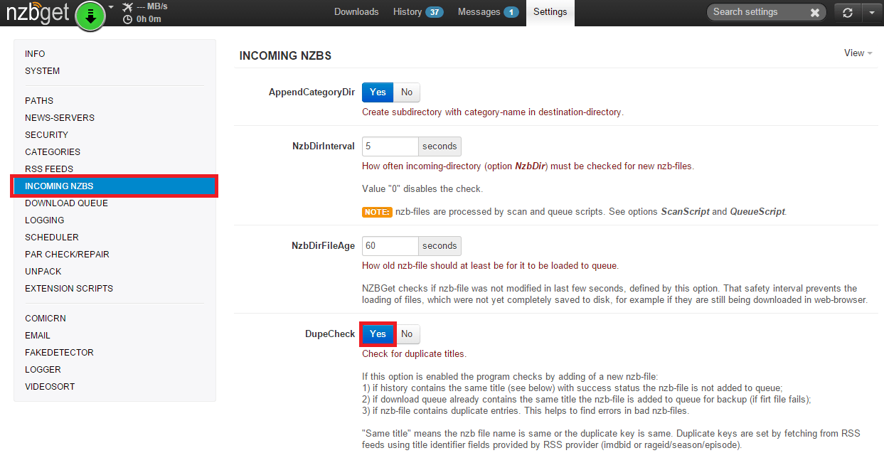 configure nzbget fakedetector avoid fake usenet files dupecheck