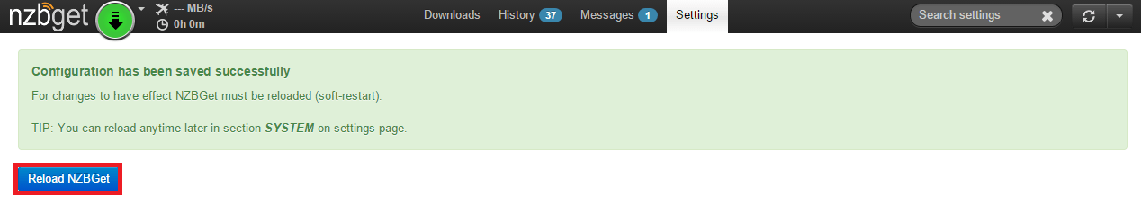 Open up the NZBGet interface, the default is http://ip.address:6789