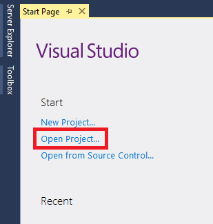 Open Visual Studio and click Open Project