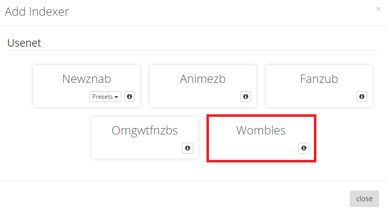 Enable the free indexer Womble by clicking Womble.