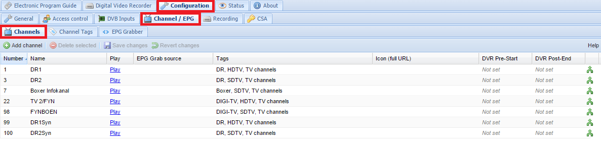 Click Configuration, then the DVB Inputs tab and choose your USB TV adapter under TV Adapters