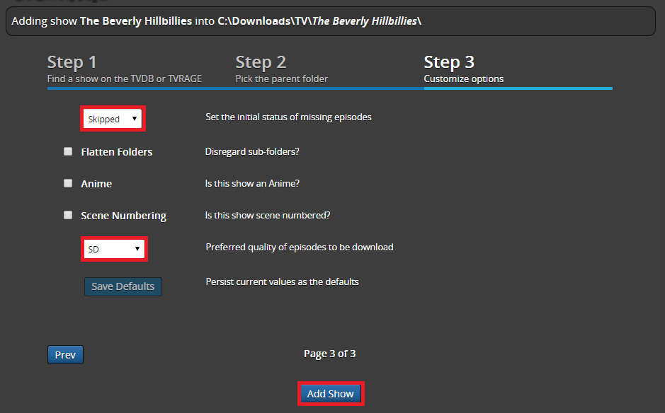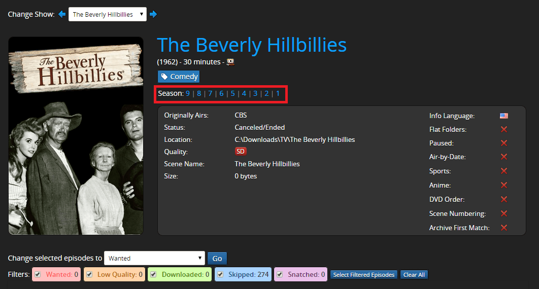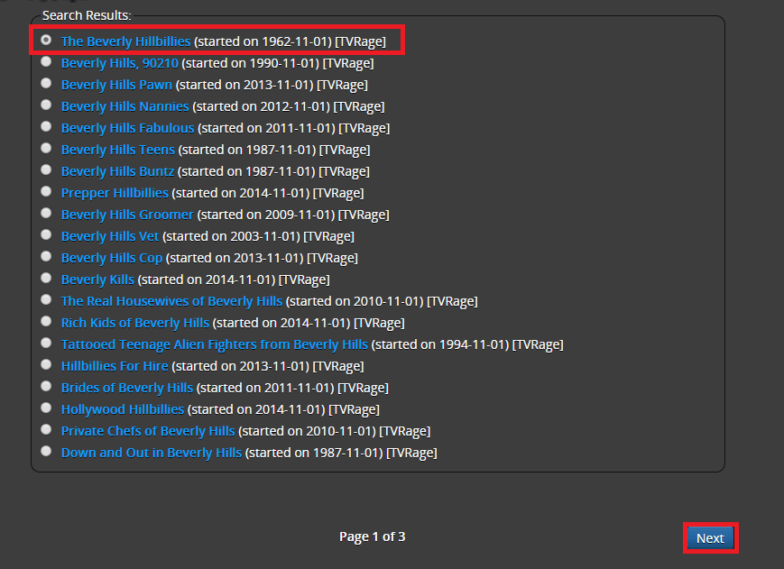 Add the name of your show and choose your indexer. I am using the public domain show Beverly Hillbillies.