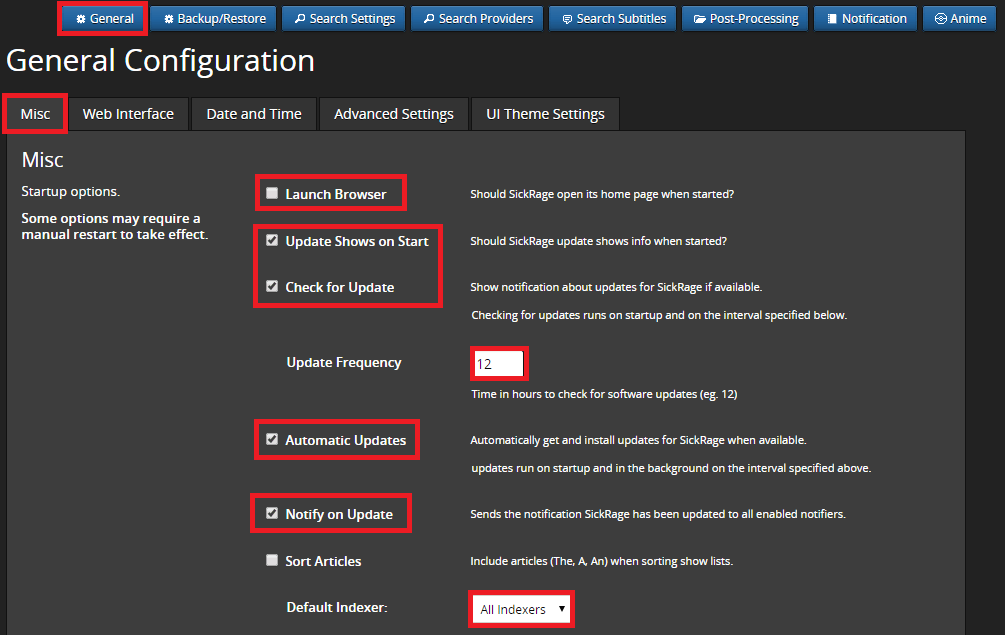 Automatic Updates is also checked so SickRage will just autoupdate when it finds improvements.