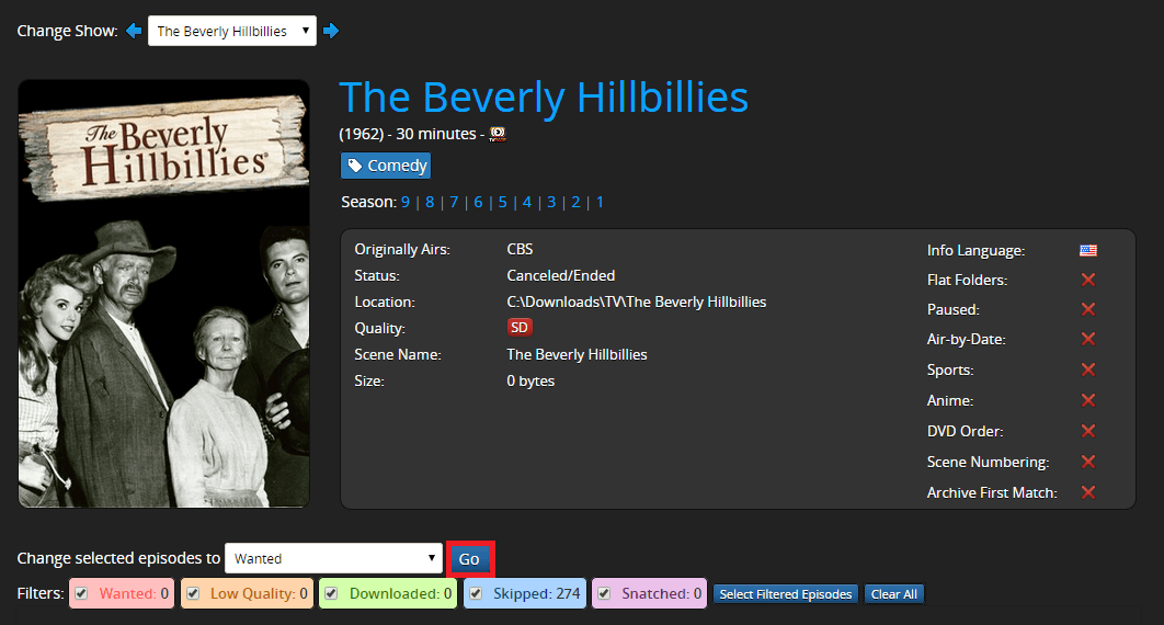 Scroll back up and you can click Go to change the episodes to Wanted