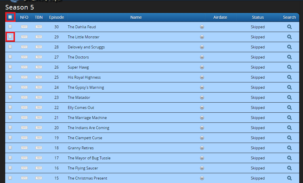 It brings me straight to the Season 5 overview and I can select the whole season (top checkbox) or individual episodes