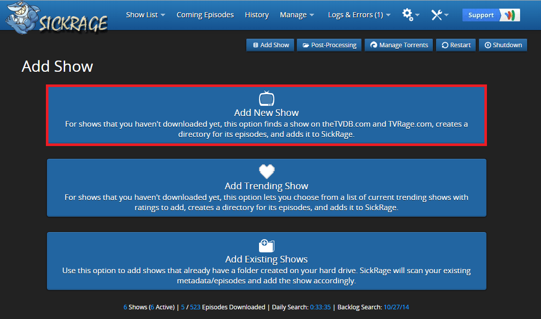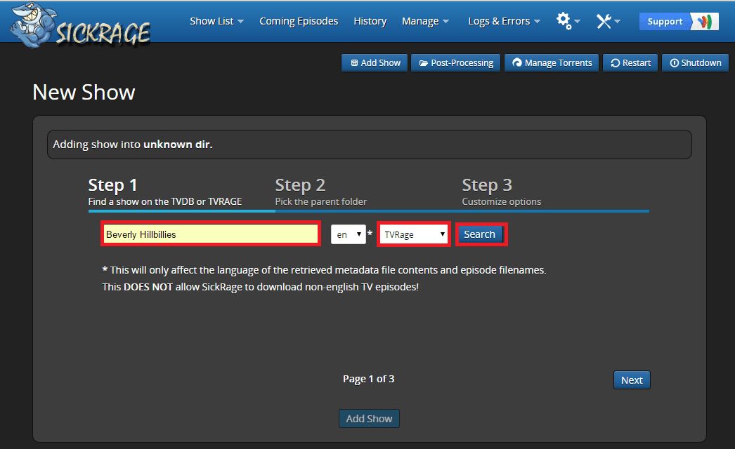 Add TV Shows to SickRage