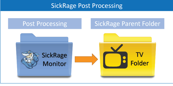 Post processing helps organize your files automatically. SickRage can scan your download folder every X minutes, rename the episode and place it in the folder in which it belongs. This makes your library ready to be imported into XBMC or Plex.
