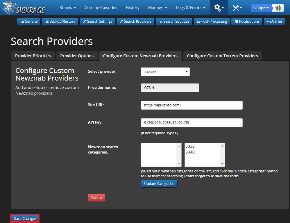 The NZBGet category is case sensitive so make sure it is correct, by default it is Series. Click Save Changes.
