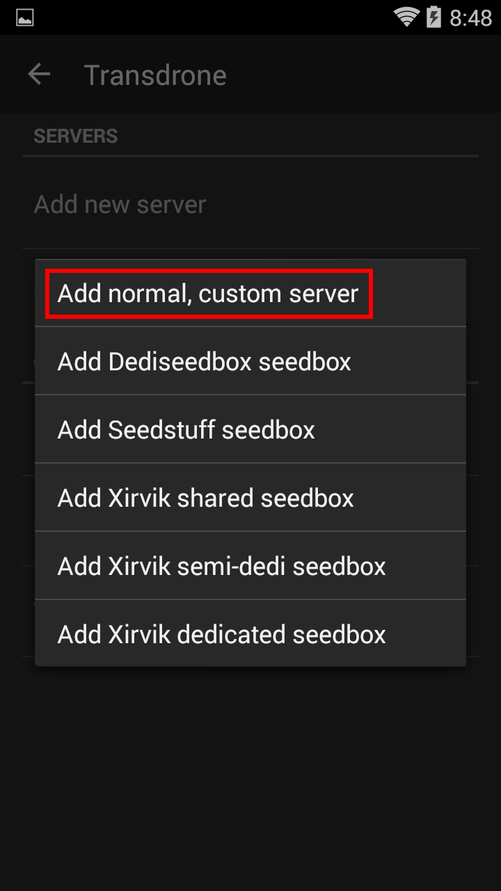 And select Add normal, custom server
