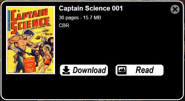 For comics, click Comics. I am using the public domain comic Captain Science