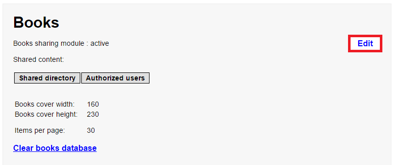 Manually type the Books location under Shared directory and add the user under Authorized users