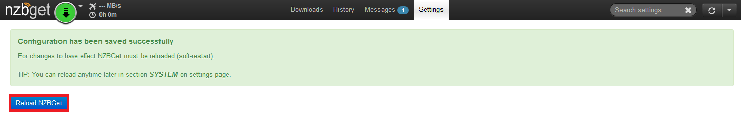 Open up nzbget’s web interface http://ip.address:6789 default user: nzbget pass: tegbzn6789
