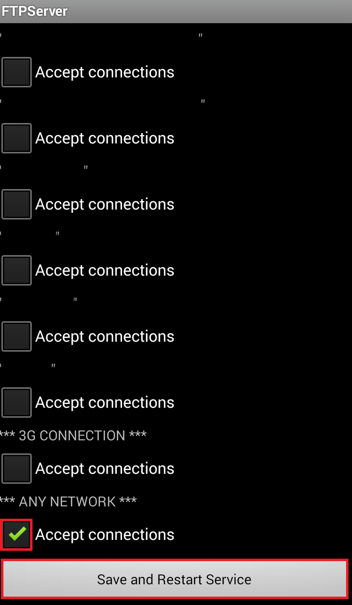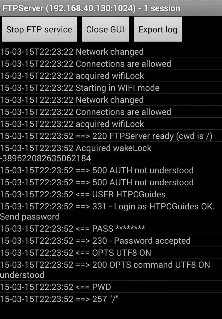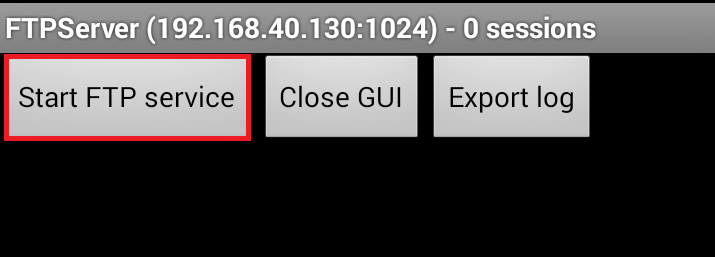 Tap Start FTP service to begin listening for FTP connections on your Android box