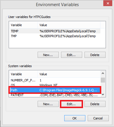 Under System Variables, scroll down to Path and click Edit