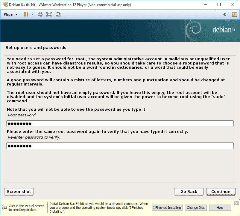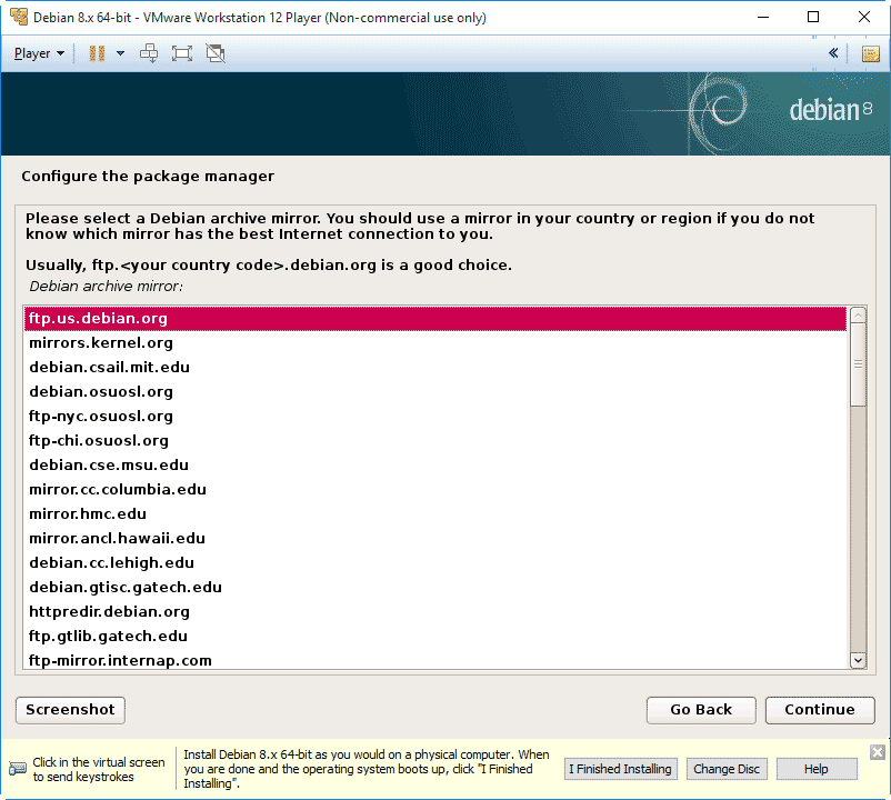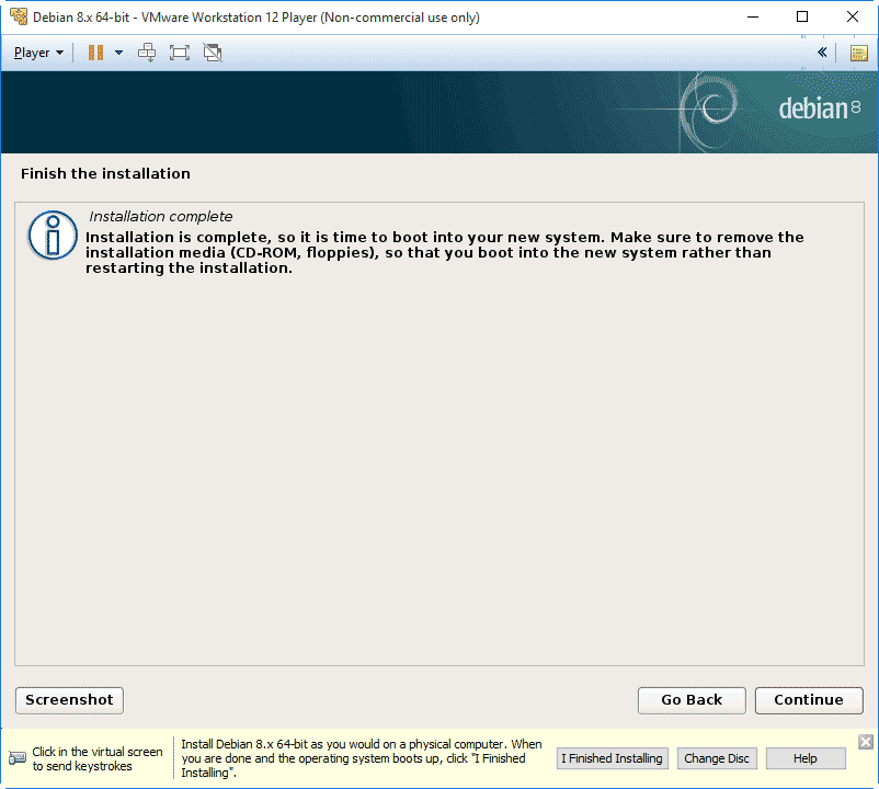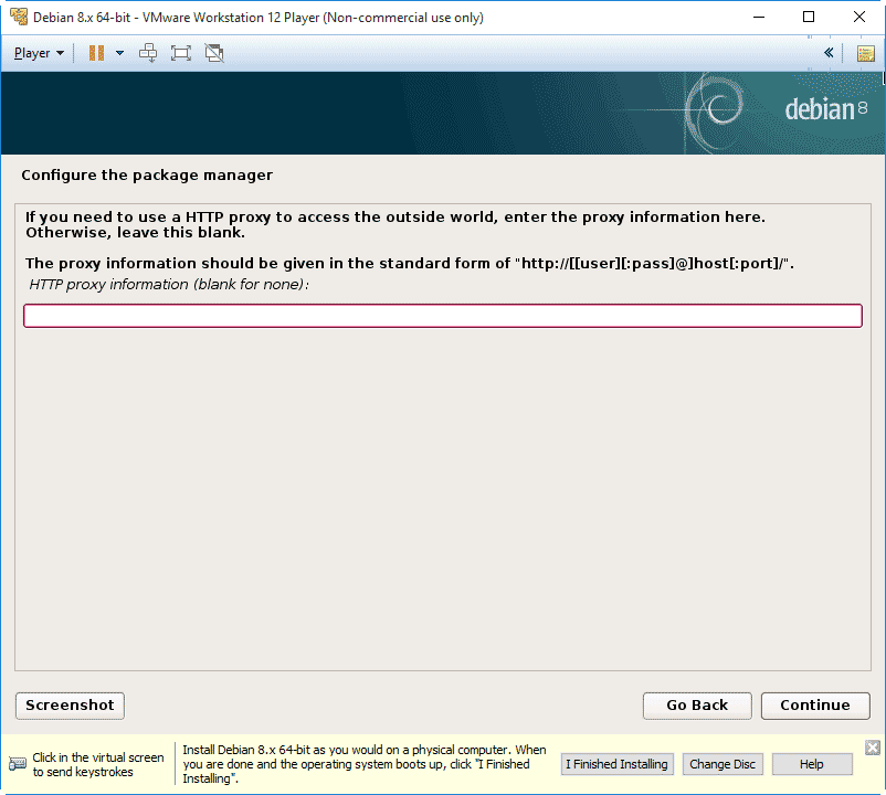 Note: if you are stuck in the VMware Debian console, you can press the Ctrl+Alt keys to unlock your mouse from the console