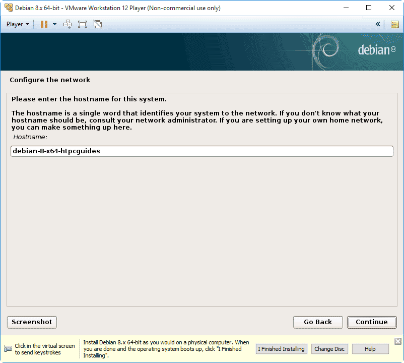 Enter your hostname so you can easily identify the Debian virtual machine