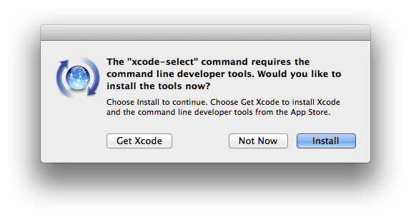 xcode-select --installYou will get a pop up asking to install command line tools. Click Install.