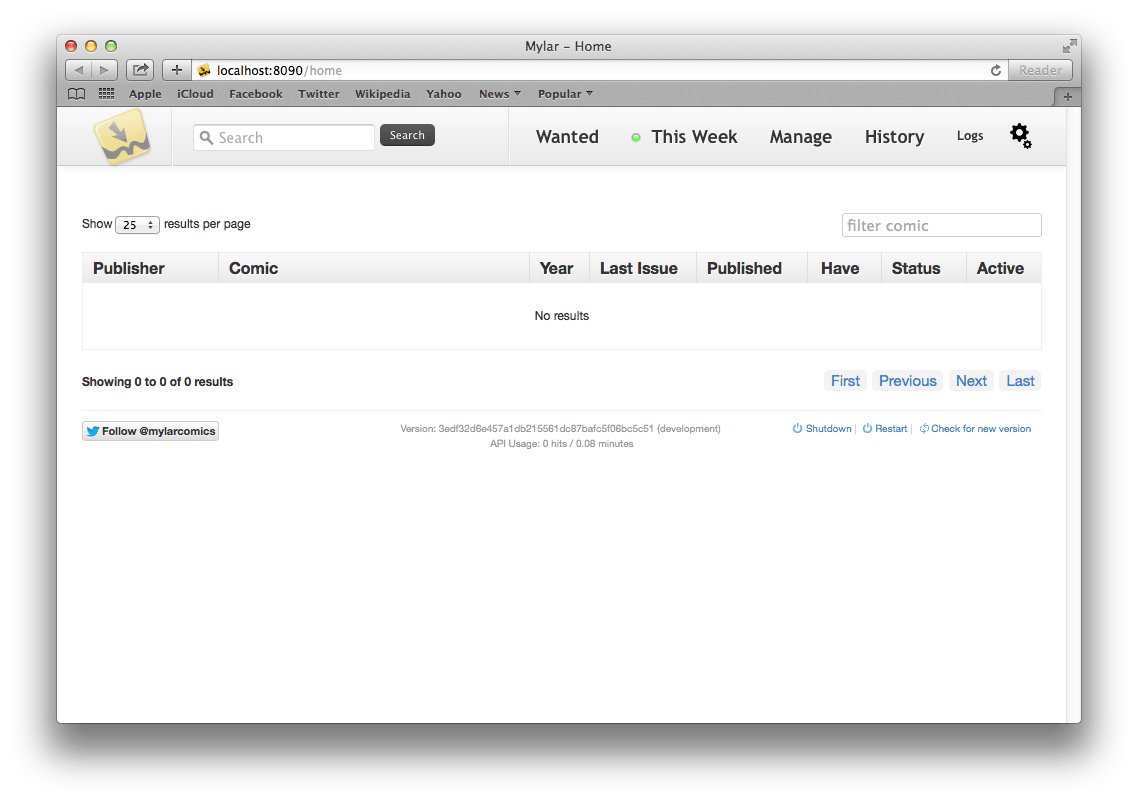 Mylar is the automatic comic book downloader. It uses Sabnzbd or NZBGet to download comics from usenet. Mylar can also send comic torrent files to your torrent downloader’s watch directory (blackhole method). The easiest way to install Mylar on Mac OSX is to use the Terminal. Do not be afraid, all you have to do is copy and paste some commands. You should be done in less than 5 minutes.