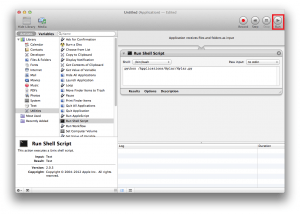 Click Utilities on the left pane then double click Run Shell Script and it will load an empty script in the Workflow pane on the right
