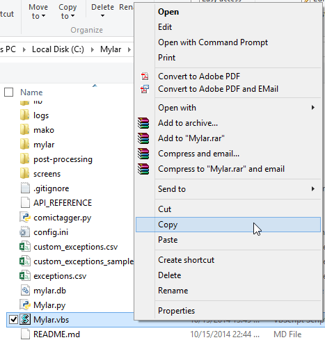 In Windows explorer, go into C:\Mylar and copy Mylar.vbs