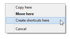 Now paste it as a shortcut in the Startup menu by right-clicking and choosing Create Shortcuts here.