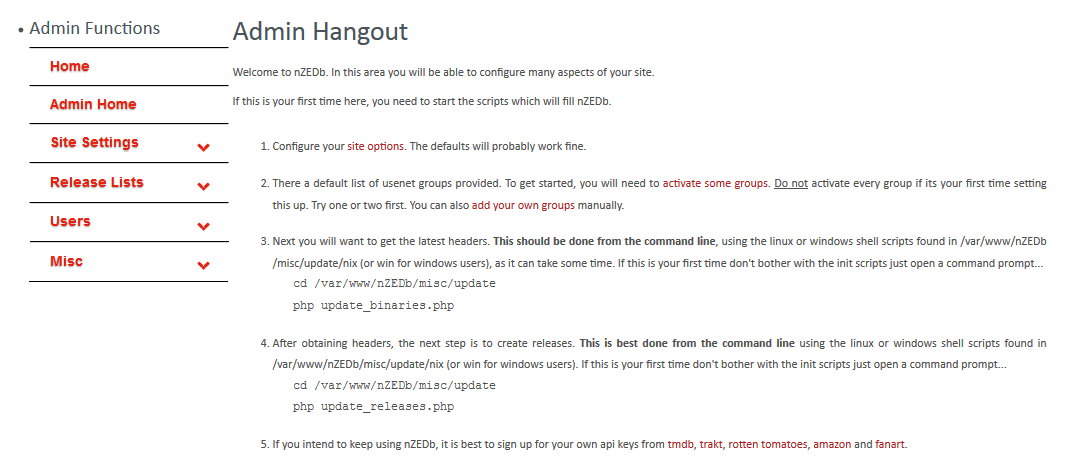 My nZEDb configuration guide should follow in the future, but this initial setup should get you indexing a few groups for personal usage.