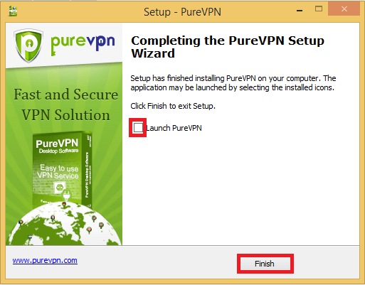 Uncheck Launch PureVPN because we need to set it to Run as an Administrator.