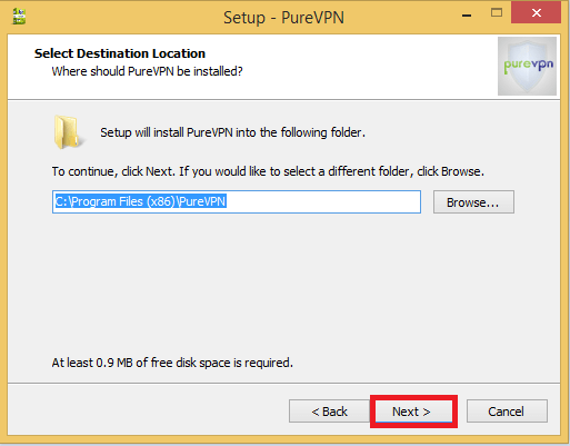 Choose where to install PureVPN. You will need to remember to run PureVPN as an Administrator.