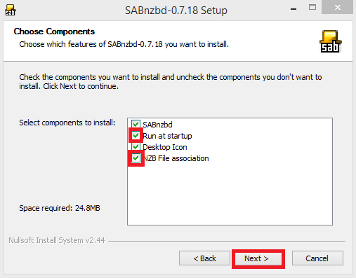 sabnzbd step 3 choose components