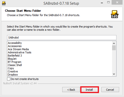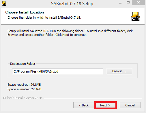 Grab the installer package of Sabnzbd for Windows. Open it