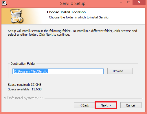 Make sure Servvio server and Serviio console are checked. Click Install.