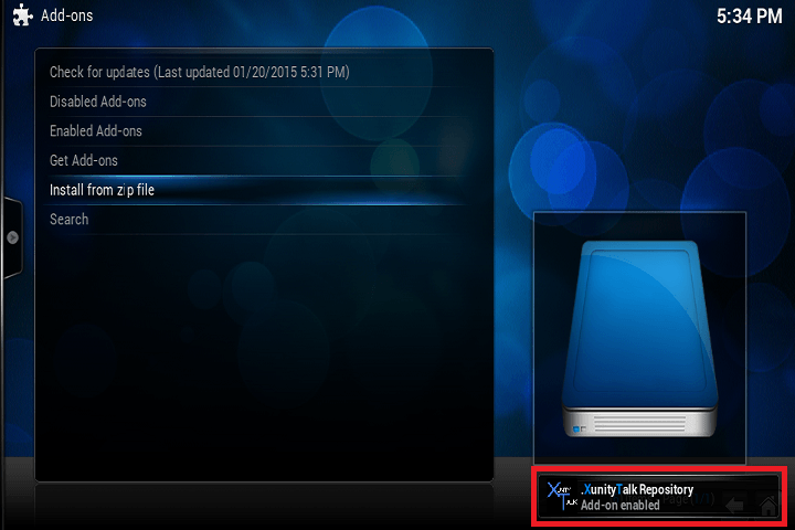 Download the NTV plugin zip file (updated link new versions here) or use Krogsbell’s if you want recording and place it in a location you are able to find within Kodi XBMC. If you plan to integrate NTV with FTV or TV Guide you will need the NTV plugin and not the Krogsbell version. You can however run NTV Plugin and Krogsbell’s side by side. Mac users should use Google Chrome to avoid Safari automatically unpacking the zip file.