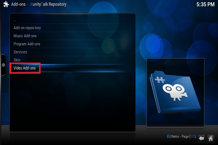 Now click the Home icon in the bottom right corner, then under Videos choose Add-ons