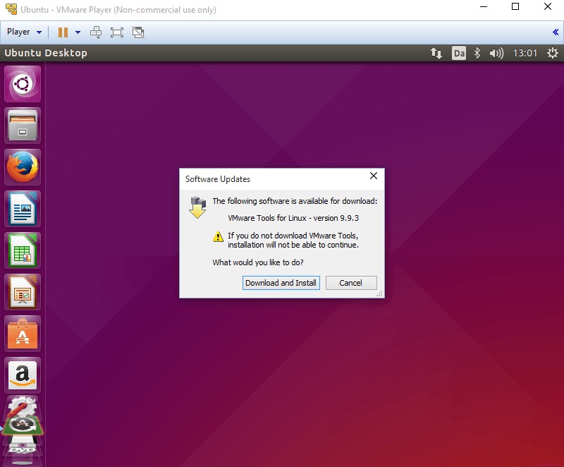 Usually you will be prompted to install VMware Tools for Linux so click Download and Install