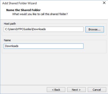 Choose a name for the share and Browse to the folder on your host machine that you want to share