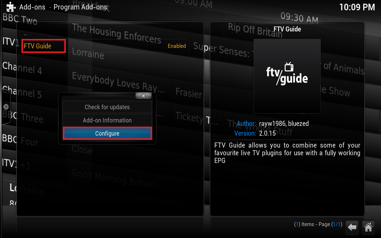 Now click FTV Guide to open the addon, click a program in the channel you wish to map to NTV