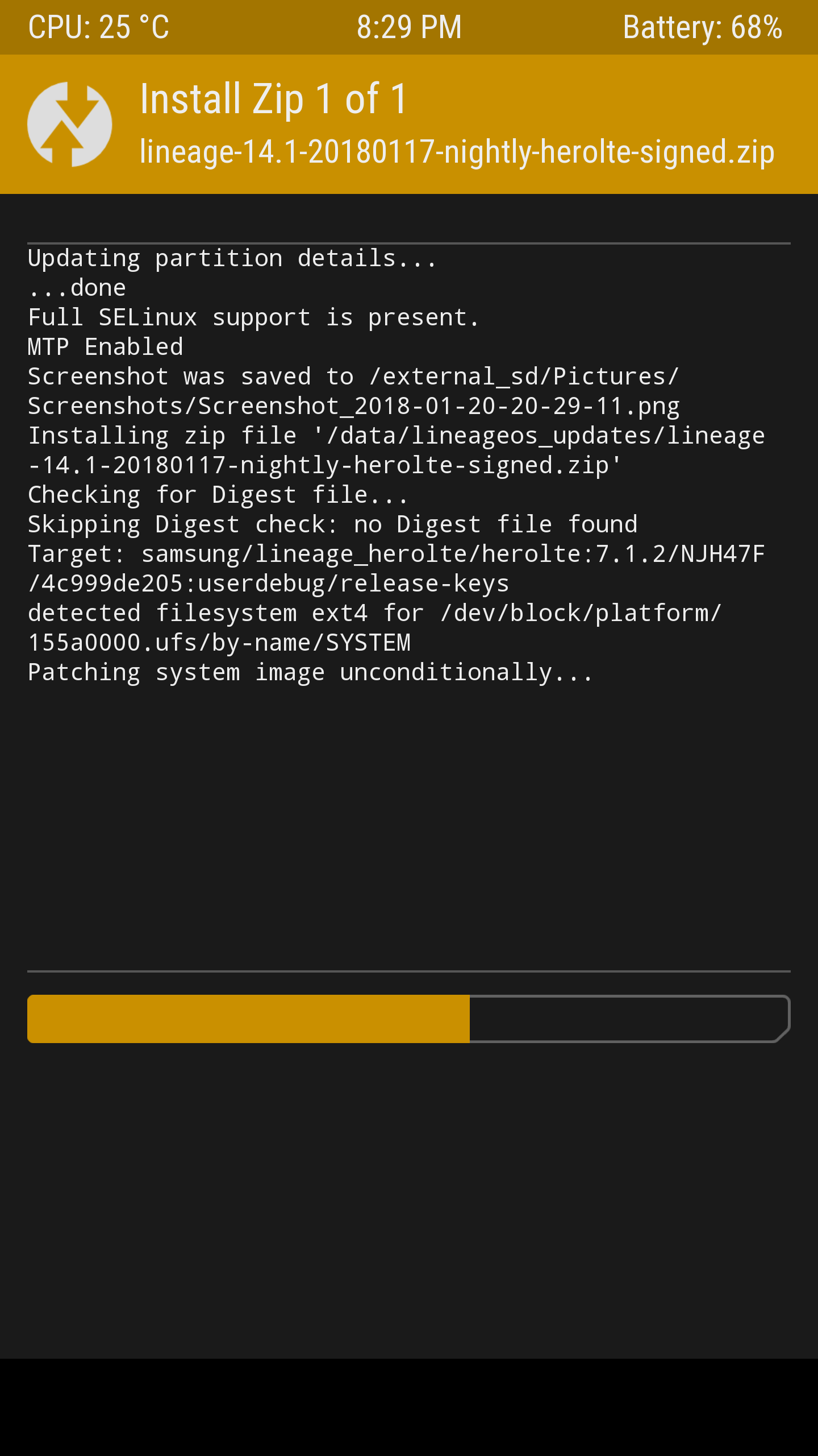 Then sit back and enjoy the flashing of your LineageOS update.