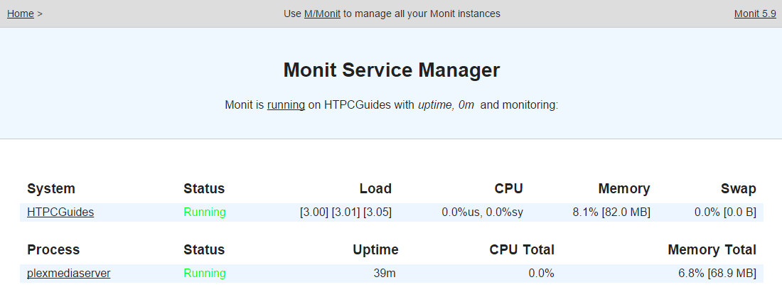 Monit is the perfect service for that as it has advanced probing for system services. At the basic level it monitors for the existence of process id files which daemons user to show a process is running. Monit does also let you probe ports and urls giving additional layers of stability checking. For example, the Plex Media Server pid could exist but the Plex service is frozen. By probing the port and URL we can restart Plex on the Raspberry Pi 2 if the Plex web interface is unavailable.