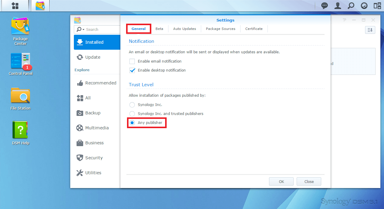 Now you can see the SynoCommunity listed, click OK and then Community in the left pane