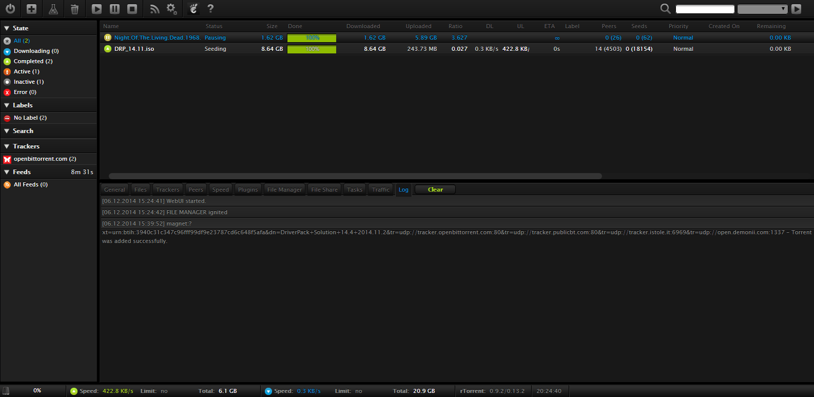 OpenVPN config: https://htpcguides.snthostings.com/rutorrent/vpn.zipSeedbox rTorrent Interface