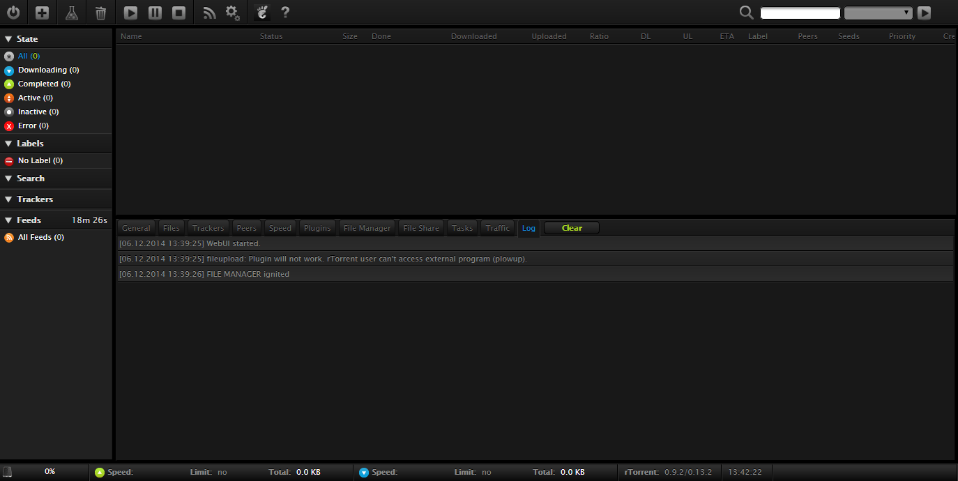 Then I saw the rutorrent interface, I noticed an insignificant error which the Administrator quickly fixed.