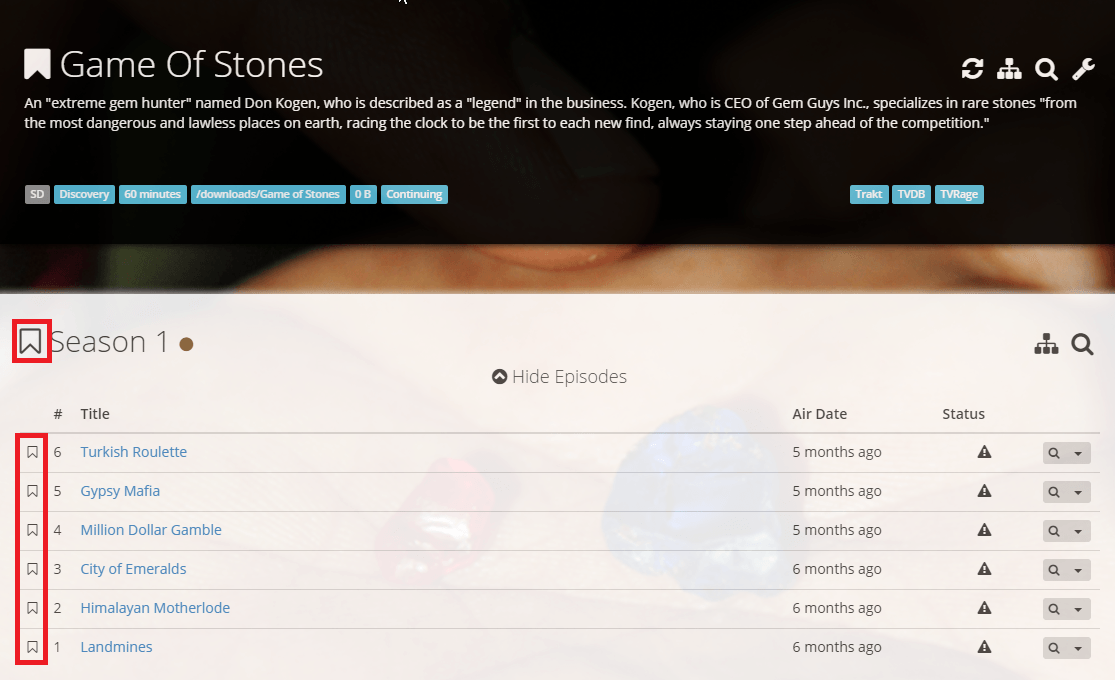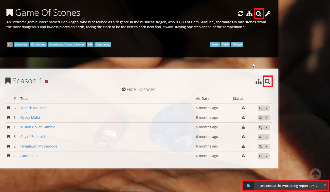 Once you are done, we are going to tell nzbdrone to search for the episodes.